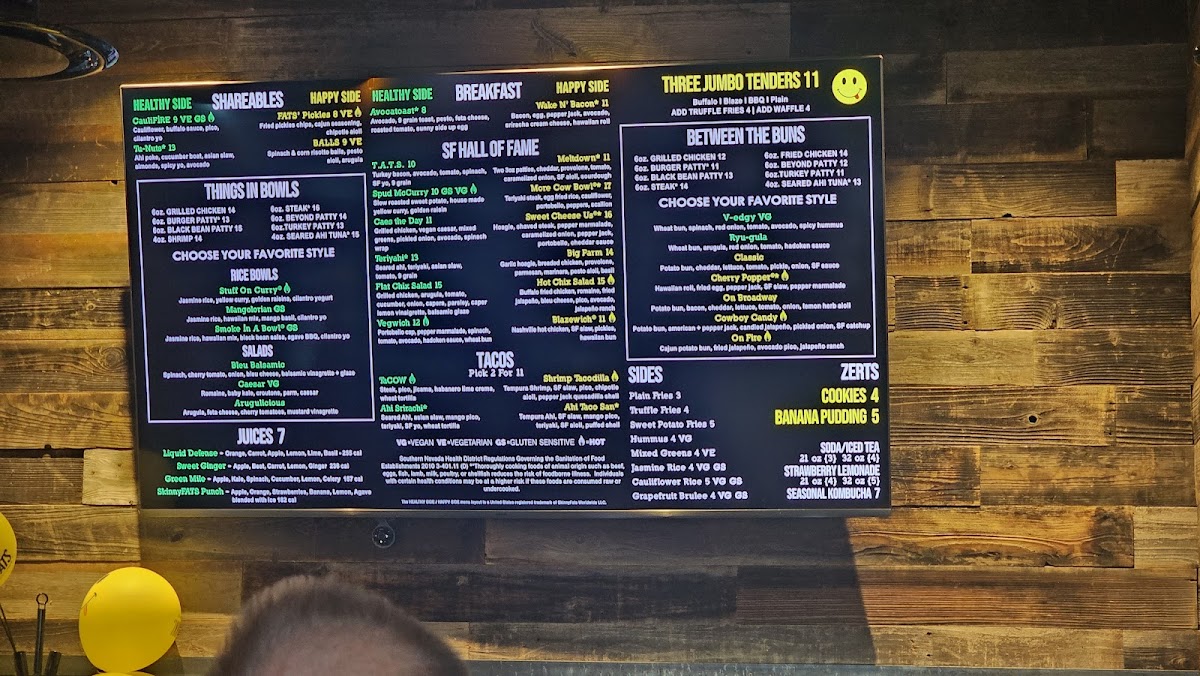 #LiveHappy - Burger Patty, cheddar, tomato, onion, pickle, lettuce, & sf sauce on Brioche Bun **Allergens: wheat, cow's milk